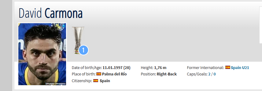 David Carmona Sierra, mbrojtës i djathtë, i datëlindjes 11 janar 1997, do të jetë pjesë e skuadrës sonë në vijim. Carmona sezonin e fundit ka qenë pjesë e skuadrës së Asteras Tripoli, në Superligën greke, ndërsa në karrierën e tij ka qenë pjesë edhe e ekipeve spanjolle, Sevilla, Cadiz, Racing Santander.