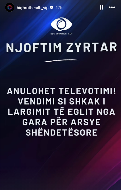 Për këtë arsye, “Big Brother VIP 4” ka anuluar televotimin, i cili përfshinte të gjithë banorët, përveç Gjestit, ku njëri prej tyre pritej të linte shtëpinë më të famshme në Shqipëri të shtunën.