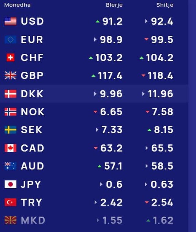 Për kursin e monedhave të tjera shihni tabelën e mëposhtme: