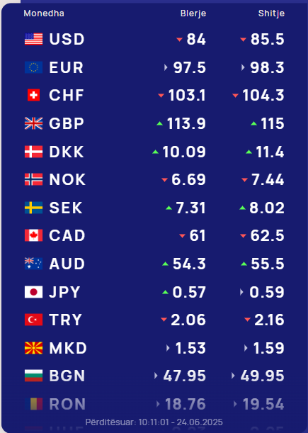 Ndërkohë monedha evropiane euro do blihet me 97.5 lekë dhe do shitet me 98.3 lekë.