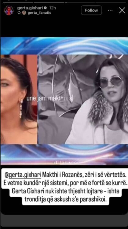 Gerta ka publikuar një instastory që kishin për ndjekësit e saj me këtë shkrim dedikuar Rozanës: