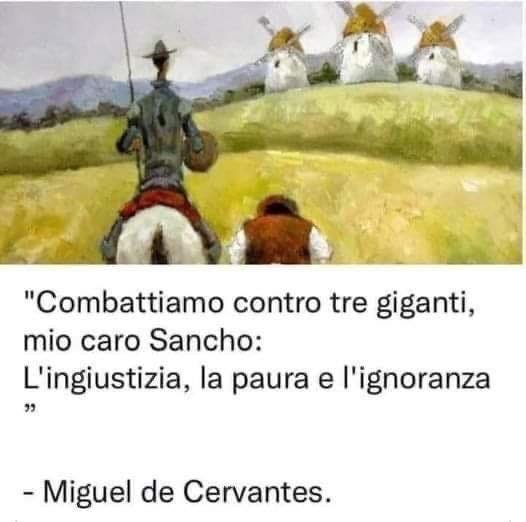 “Luftojmë kundër tre gjigandëve, i dashur Sancho: Padrejtësia, frika dhe injoranca” – Miguel de Cervantes”, shkruan Ahmetaj.