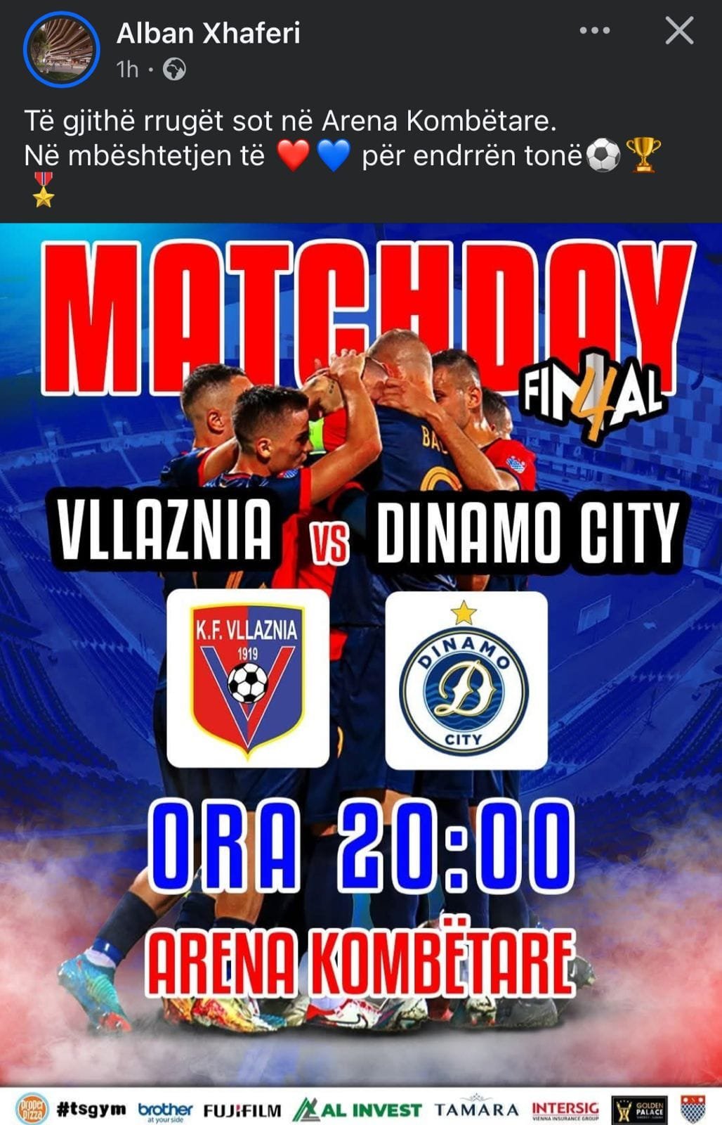 Në profilin e tij zyrtar ai shkruan se: “Të gjithë rrugët sot në Arena Kombëtare. Në mbështetjen të ❤️💙 për endrrën tonë⚽️🏆”